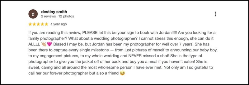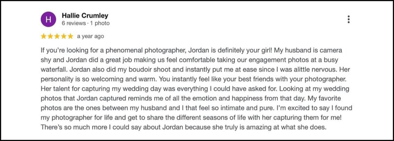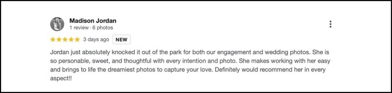 [Your Name] is a true artist behind the camera. Our wedding photos are nothing short of magical. They have a keen eye for detail and a unique ability to capture the emotion and essence of the moment. Every time we look at our wedding album, we are transported back to that wonderful day. [Your Name] was professional, accommodating, and a pleasure to work with from start to finish. They listened to our ideas and brought them to life, exceeding our expectations in every way. We are forever grateful for the incredible work they did. If you want photographs that tell a story and evoke emotion, [Your Name] is the photographer you've been searching for!